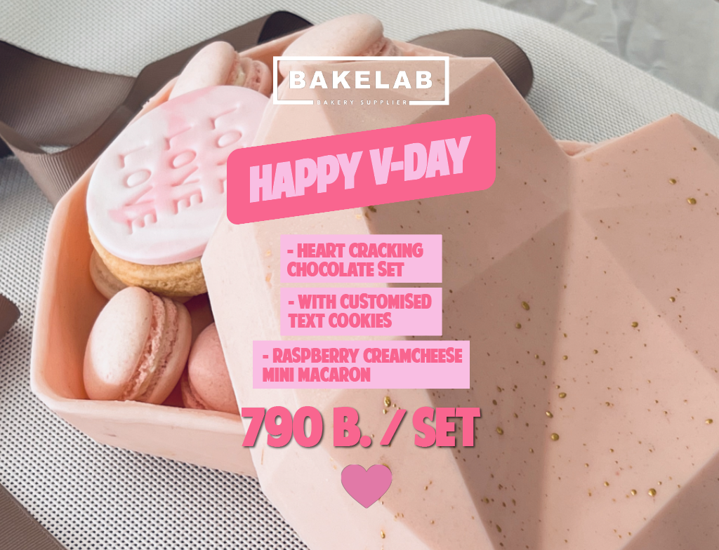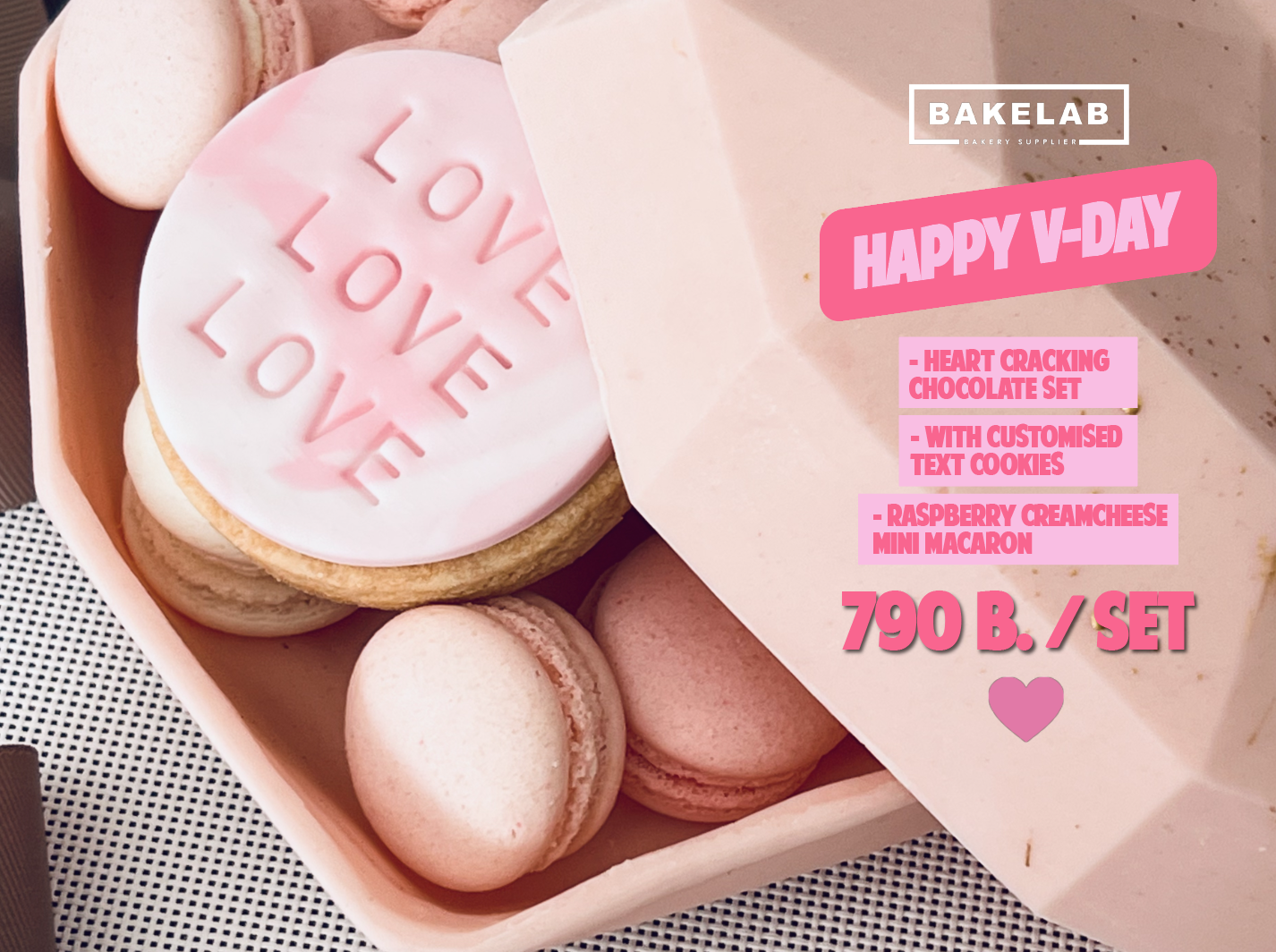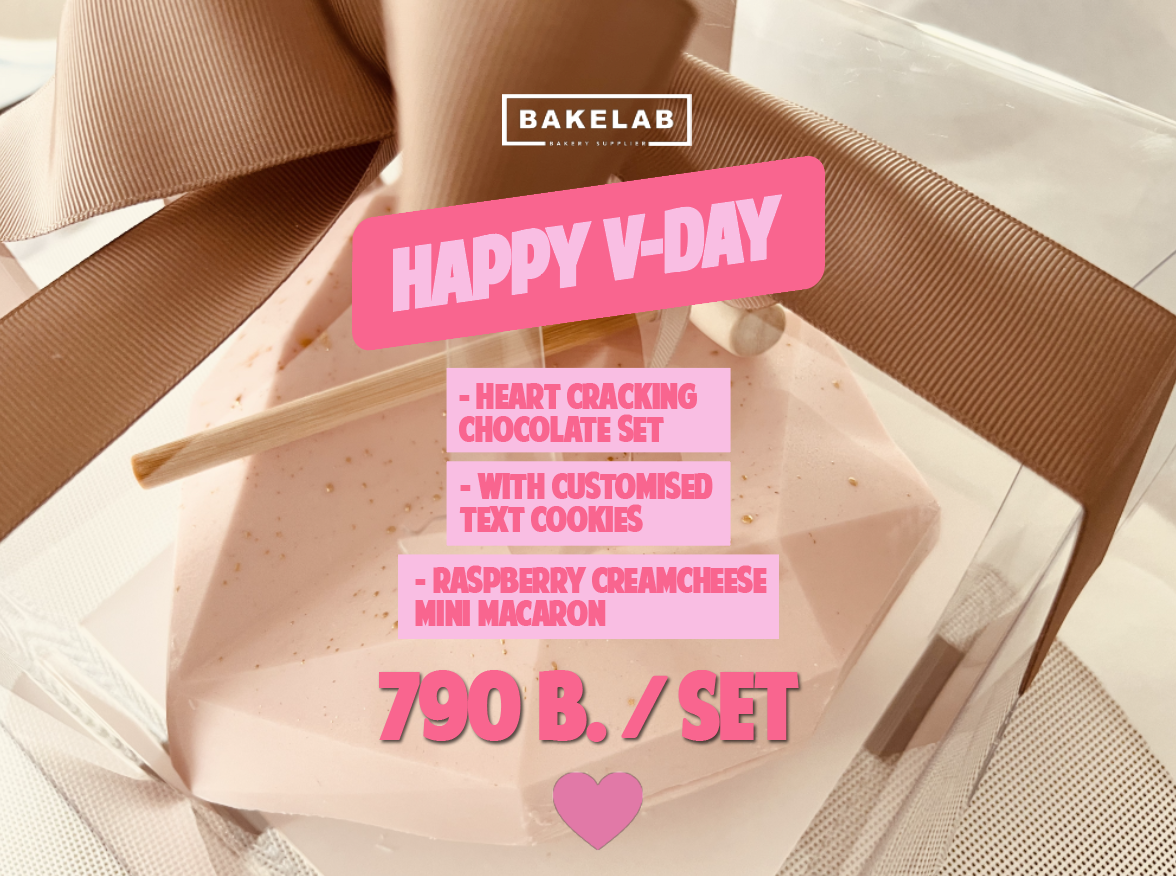 บรรจุกล่อง pvc ใส มีหูหิ้ว พร้อม Tag "Happy Valentine's day" และ ผูกริบบิ้นตามสีเซ็ทของสินค้า